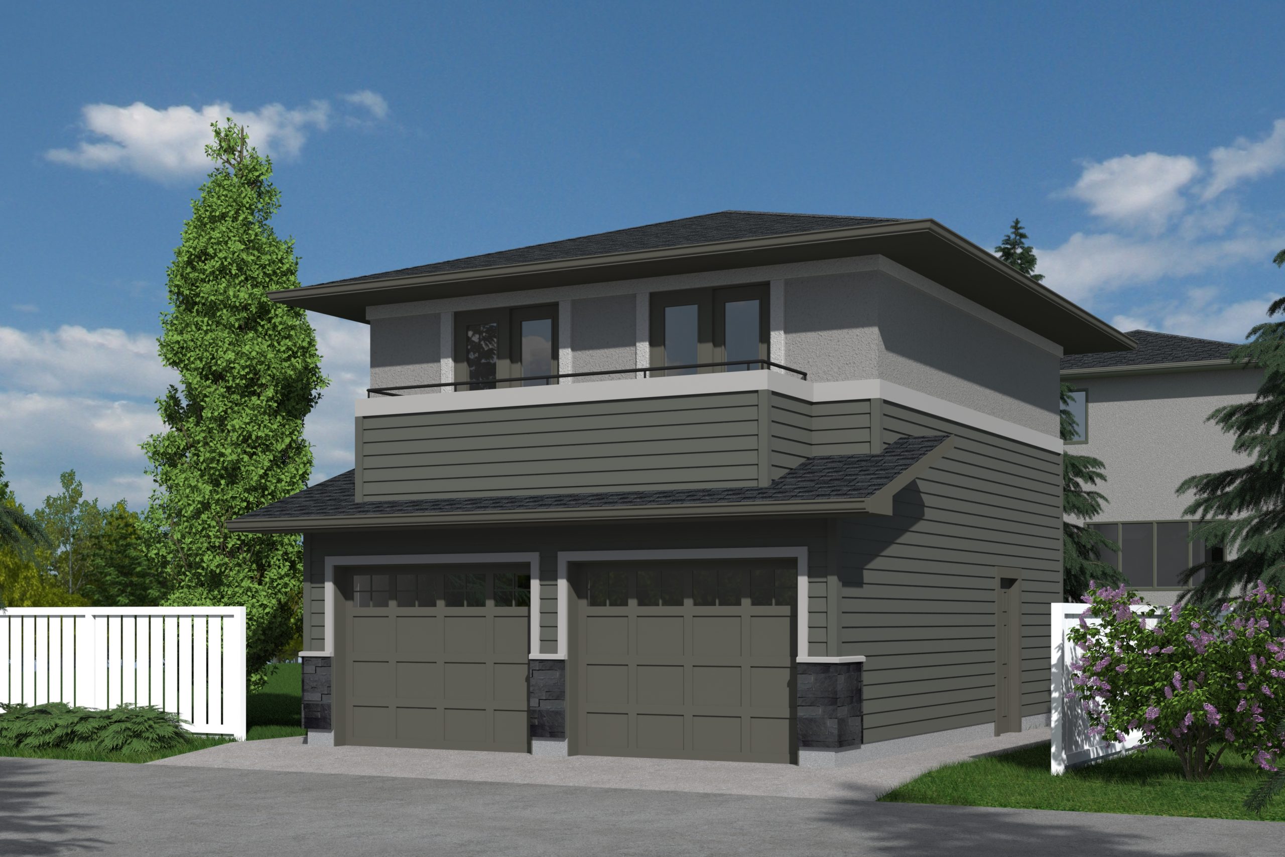 The Prairie Harris-528 plan is a garage studio/laneway home with a 2 car garage at grade level and living space on the second floor.  This prairie plan features: